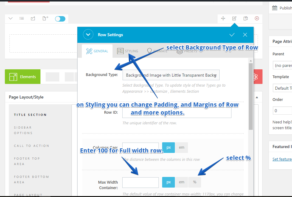 This theme have Page, layout or styling settings on every single service, page, post, veterinary and products. On post editor scroll down to see the page layout options.