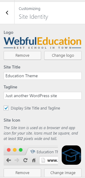 This section gives you ability to change colors, of header background, links, navigation background, links color much more. For logo please go to site identity in customize options.