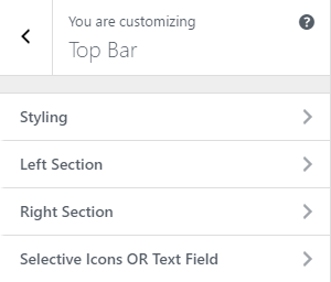 Left section you can select, Menu, Social icons, or Text fields to display.