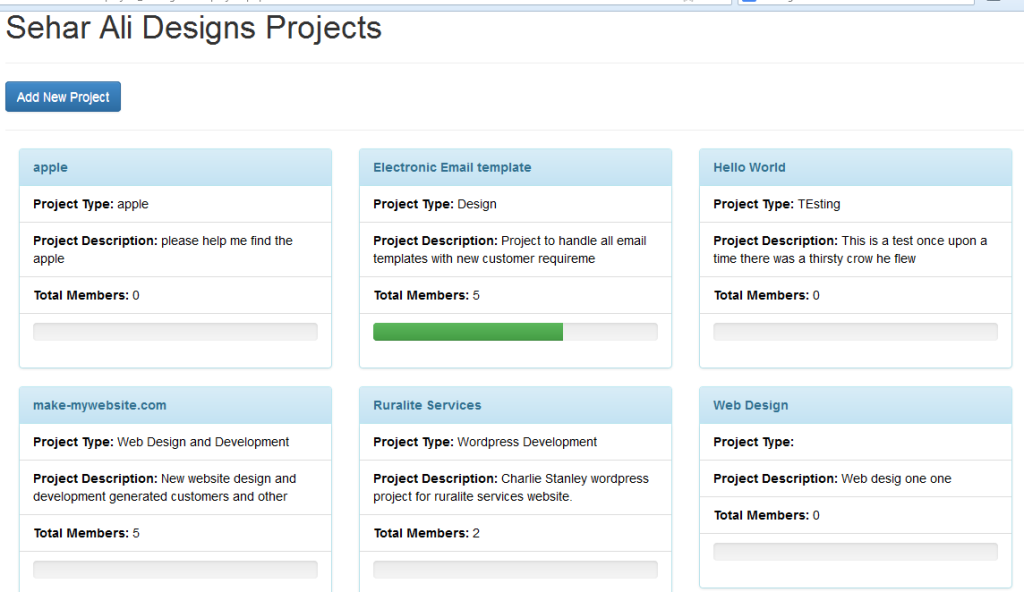 Click on add new project so you can add new project in that page you will able to add project details and 5 options to add new project members you can write emails of project members there you want to make project members and assign them tasks in future. If those emails are not already users of system then system will create their account will email them username and password and assign them as project member as well.