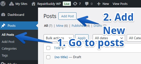 Step 2: Go to Posts → Add New