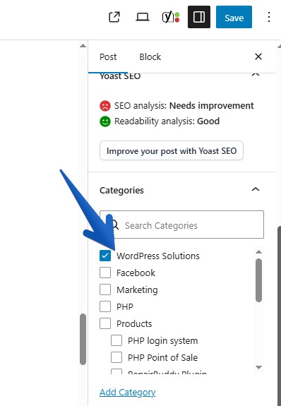 Step 5: Selecting Category in WordPress Post