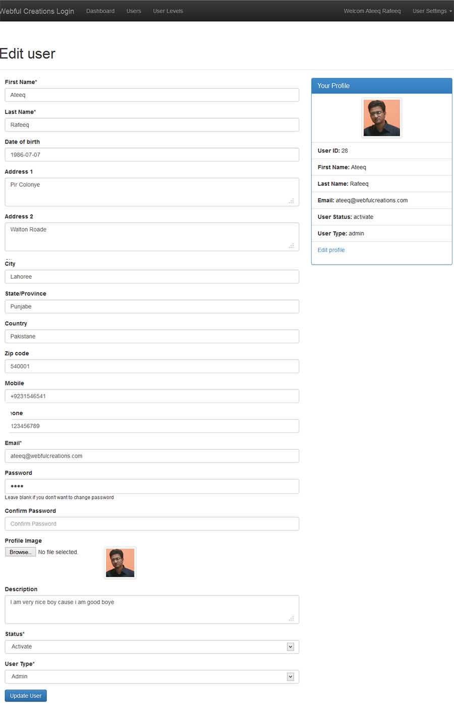 - PHP login edit user