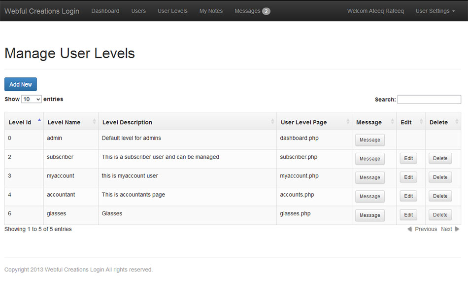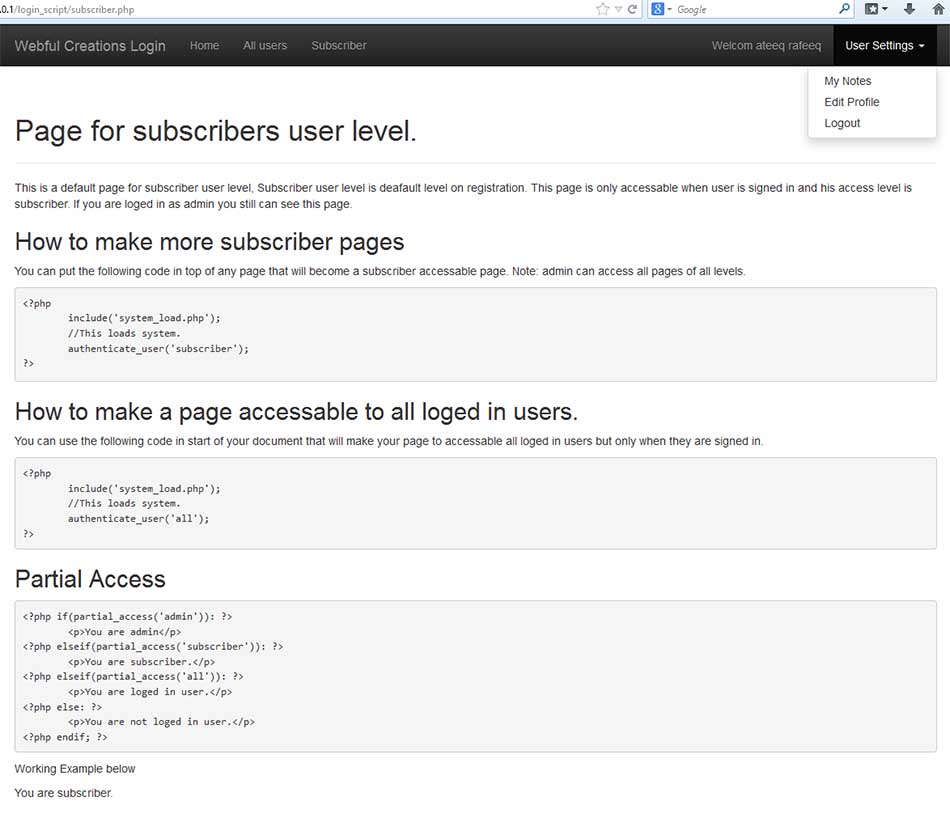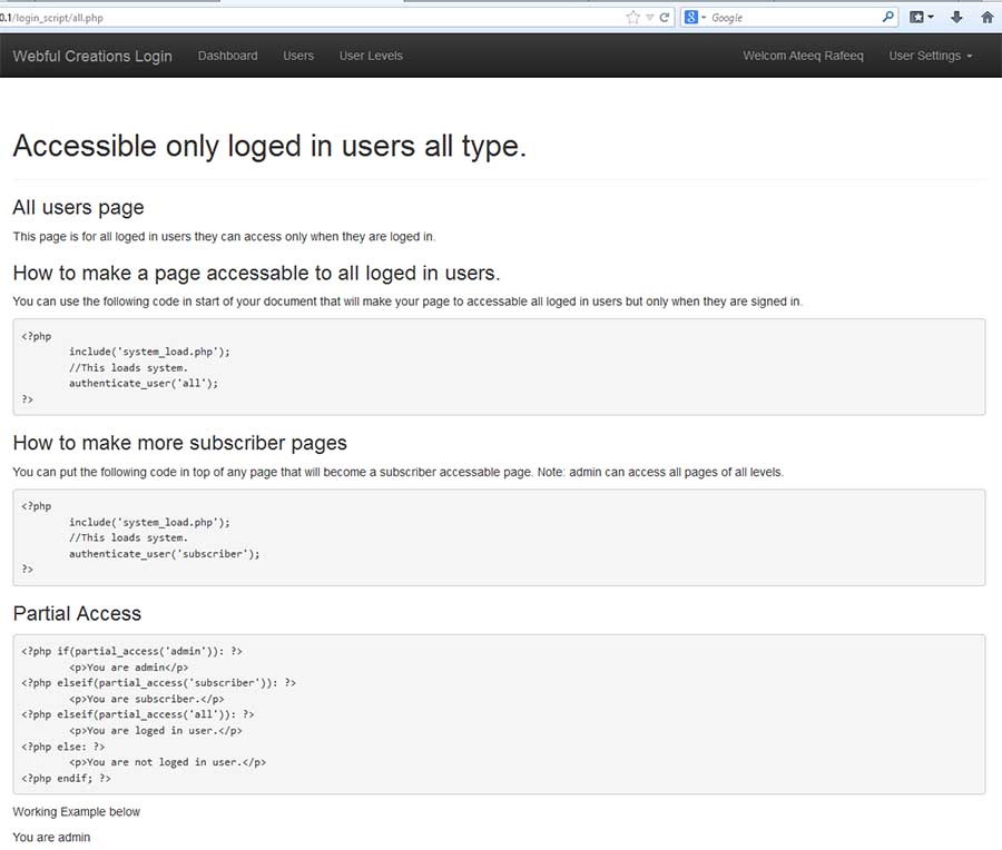 - PHP login user levels
