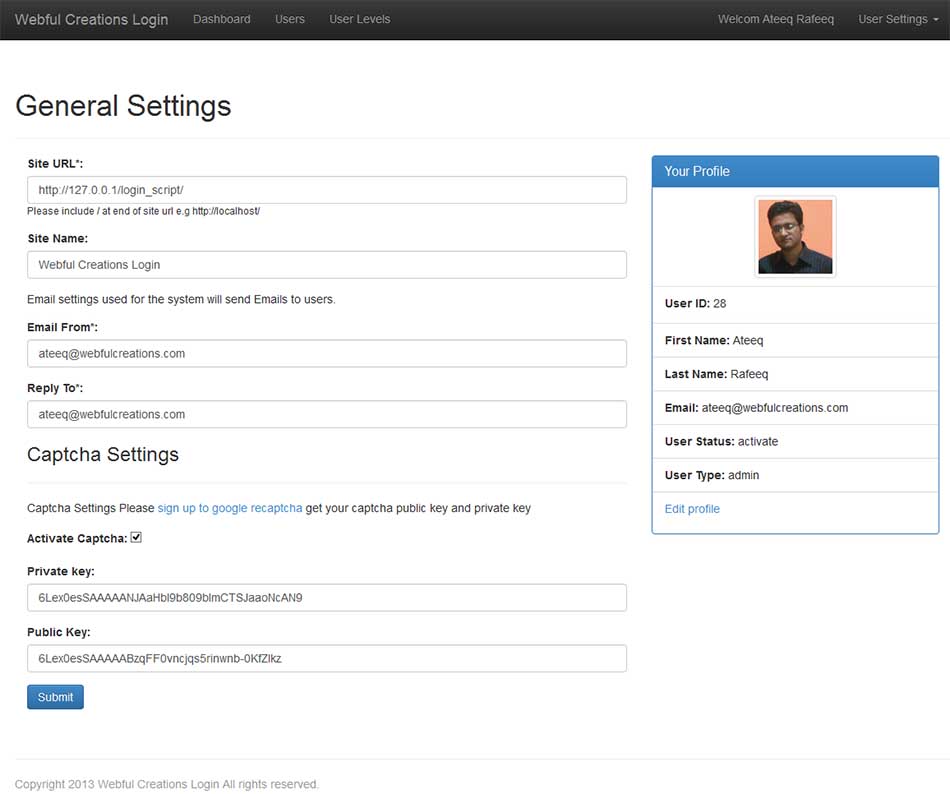 PHP login system is more secure now and sql injection free its completely object oriented and updated queries to mysqli instead of mysql_connect old method. Recaptcha from google in registration page make php login system more secure and spam free. Recaptcha can be enabled or disabled via options page easily.